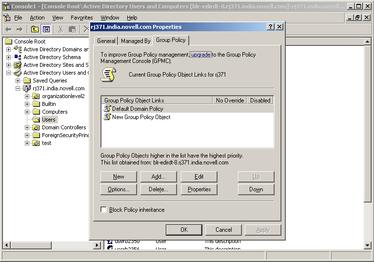 NOTE:If you have installed the Group Policy Management Console from Microsoft, the Group Policy tab options described below are no longer accessible. Refer to the Microsoft Windows Server 2003 documentation for instructions on how to use the Group Policy Management Console to manage Group Policies.