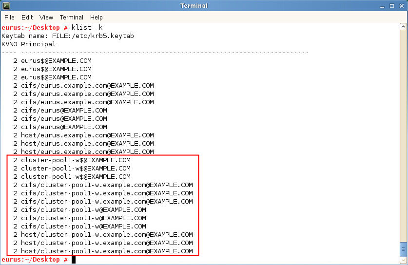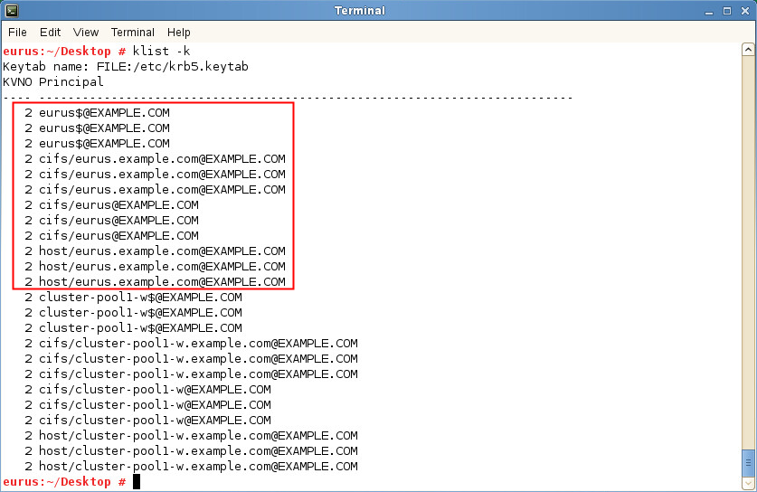 1. From the terminal console, run the klist -k command.