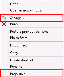 Right-click a Windows mapped network drive or folder, then click Salvage or Properties > Salvage.