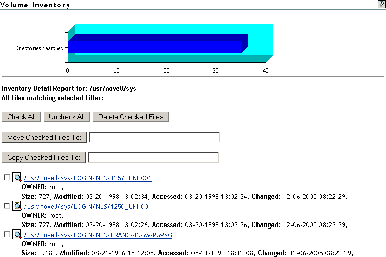 If you are viewing the File System Listing page for the desired directory, you can generate the same reports by clicking the Inventory link on this page.