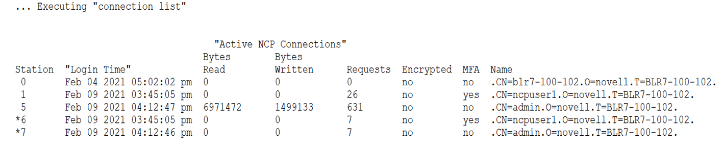 This opens the NCPCON interactive console in the terminal console where you can enter the NCP Server console commands. Enter exit to stop the interactive mode.