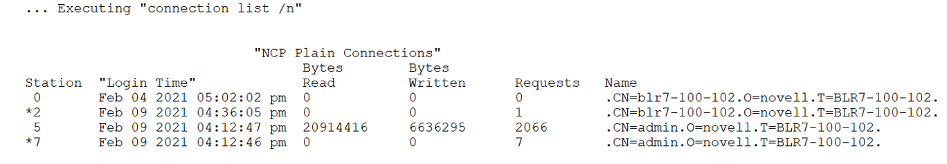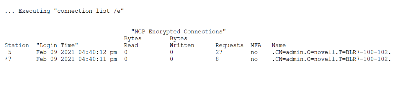 Allows you to verify the current number of concurrent NCP threads running on the server. Use this command to verify the settings that you make for the ADDITIONAL_SSG_THREADS and CONCURRENT_ASYNC_REQUESTS settings.