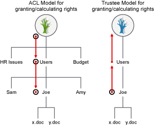 Figure 12-1 Compare the Linux ACL Model and the OES Trustee Model