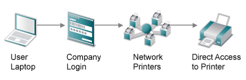 Direct Print Accounting: A printer that is enabled for iPrint Direct sends print jobs directly to the printer instead of sending the job to the print server first. The print job is sent to the printer in LPR or raw 9100 format, depending on the setting in the gateway autoload command for the printer. Although this greatly reduces server communication, the ability to audit print jobs is lost. However, if you are running a third-party print accounting solution, OpenText iPrint client can integrate with the third-party print accounting solution to provide support for accounting print jobs to direct printers.