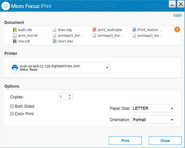 Right-click on a file or files, then select iPrint, an iPrint dialog is displayed.