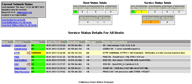 After a few minutes, verify that the HTTP status for Nagios has been updated to the OK (green) state.