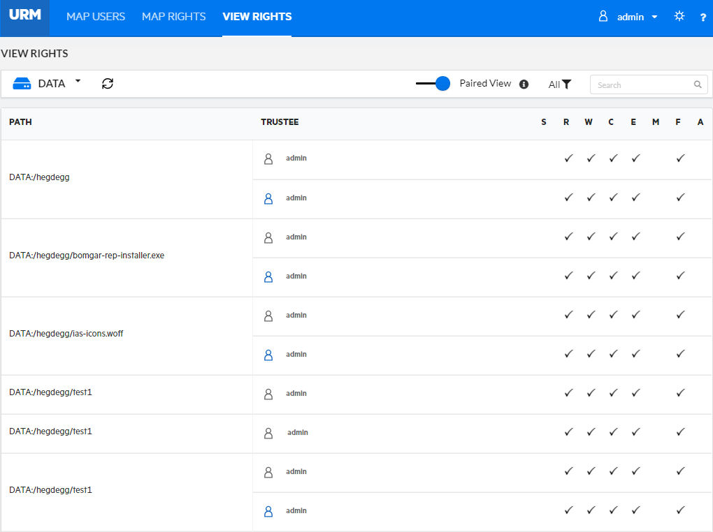Enable the Paired View option to display the eDirectory and Active Directory trustee paired view (with common path). Point your browser to