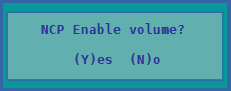 Specify whether to enable the LVM logical volume for NCP file access. Press y (yes) to allow NCP file access, or press n (No) to disallow NCP file access at this time.