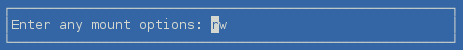 The Read/Write (rw) option is specified by default. You can add other mount options, or modify this option. For a list of available options that work with the file system type you are using, see the mount(8) man page. |