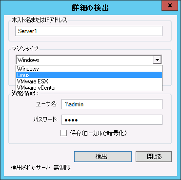 詳細については、ターゲットホストの検出ガイドラインを参照してください。