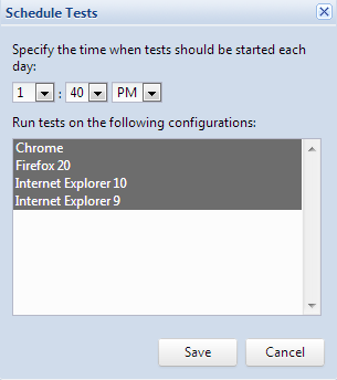 - 在计划测试对话框中,指定每天应开始测试执行的时间。
