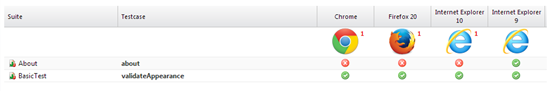 - 完成执行时,请单击开始时间链接。 您可以查看每个测试和每个配置的测试结果。