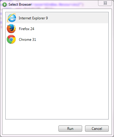 - 在选择浏览器对话框上,选择重新播放测试所要使用的浏览器。