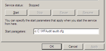 Note: In the Windows environment, auditing runs as a Windows service. You can also run auditing from a command line, as a separate process. To do this, you use the mfauditmgr command.