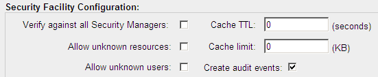 5. Under the MF Directory Server tab, in the Security Facility Configuration area, select the Create audit events checkbox, and at the bottom of the screen, click Apply.